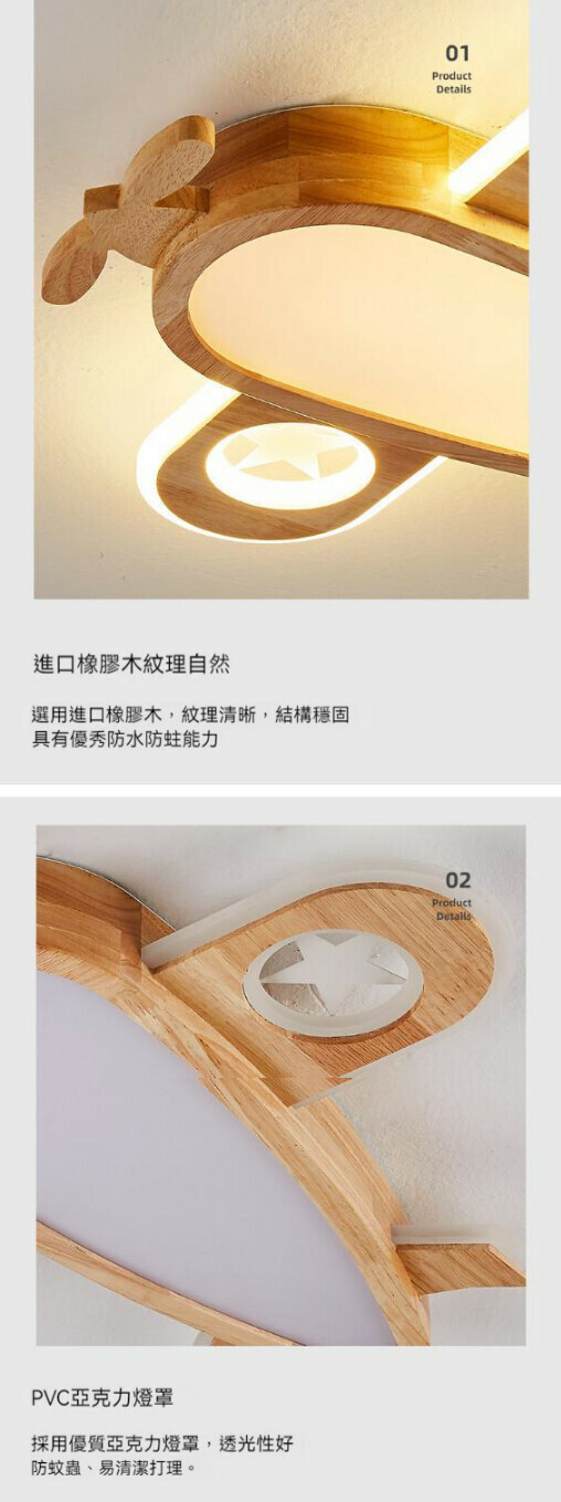 新款飛機款原木吊燈(吊燈款65cm)【LED三色變光】