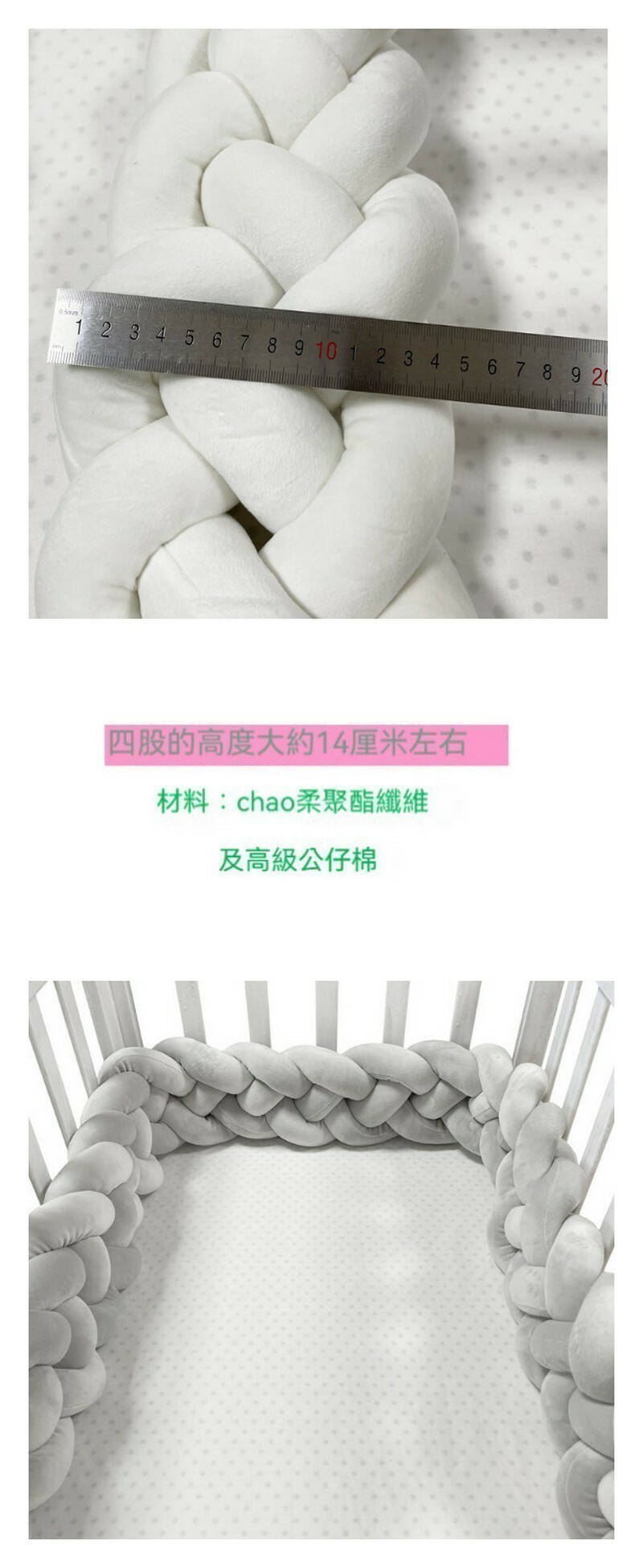 新款防摔防撞四股麻花編織床圍 抱枕(NO1 灰色)(4股3.8米)