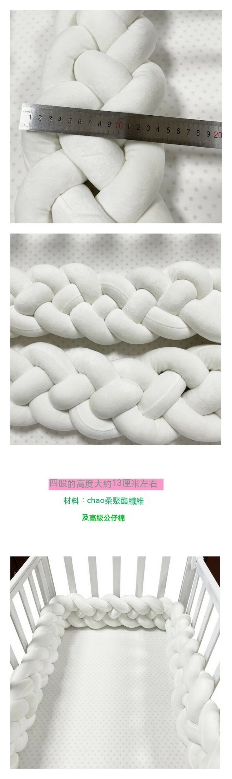 新款防摔防撞四股麻花編織床圍 抱枕(NO1 純白色)(4股2.5米)