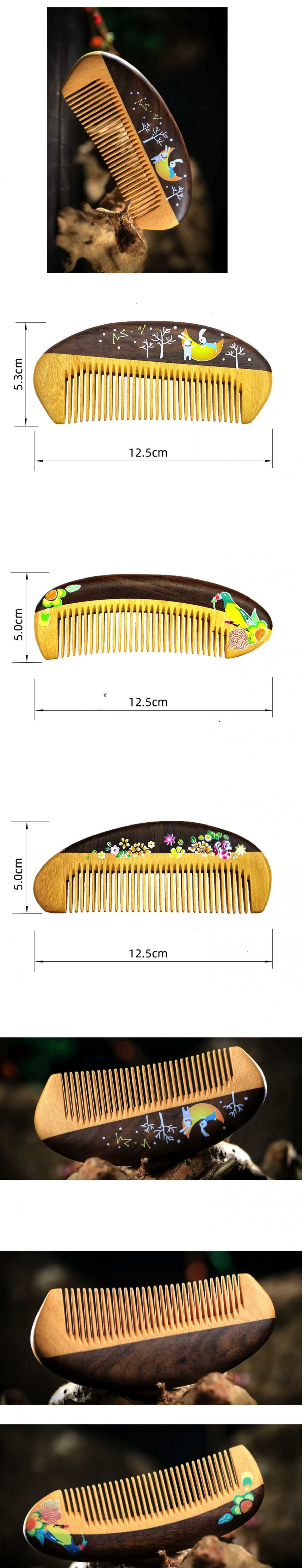新款防靜電檀木印花木梳(桔色 繁花似錦)