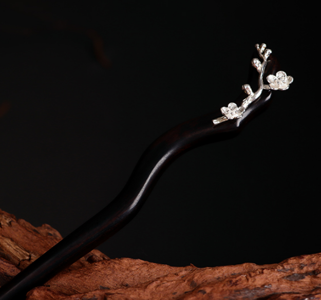新款古風簡約黑檀木配銀髮簪(念卿)(尺寸:長17.8cm)