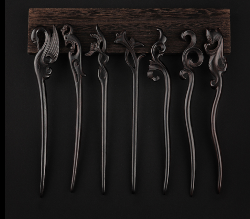 新款古風簡約黑檀木髮簪(黑天鵝)(尺寸:長19.9cm)
