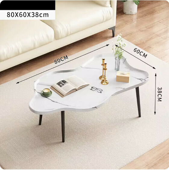 新款人造板輕奢極簡茶几(白石紋-雲朵款)【尺寸:120*60*48cm】