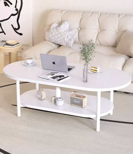 新款人造板面飾奶油風茶几(白色)【尺寸:80*40*42cm】