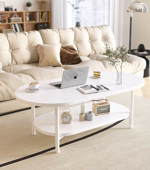 新款人造板面飾奶油風茶几(木色)【尺寸:120*58*42cm】