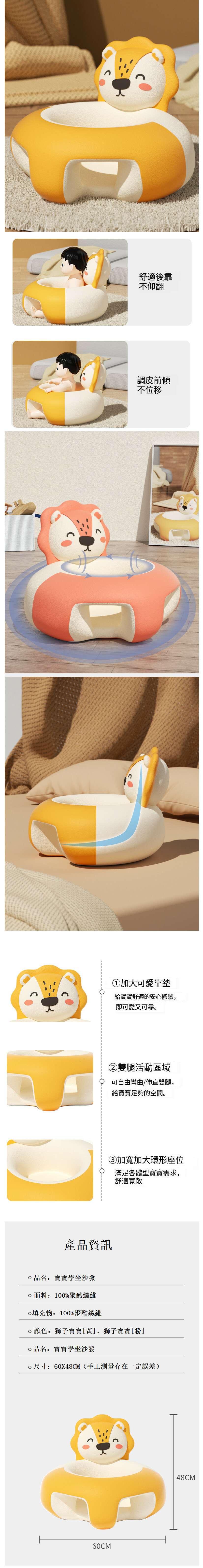 新款嬰兒學座椅 訓練坐立神器 免充氣沙發椅【橘粉小獅子】