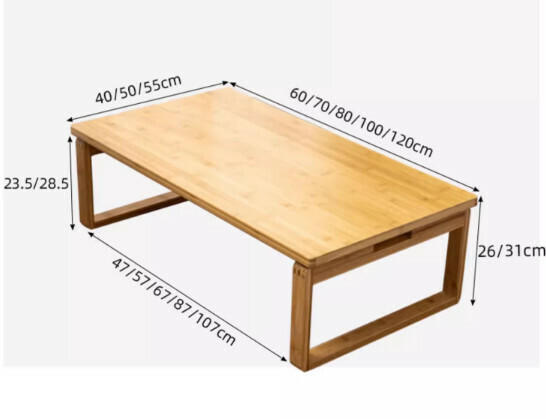 新款楠竹可折疊茶几(原木案頭-原木桌脚)【尺寸:100*55cm 】