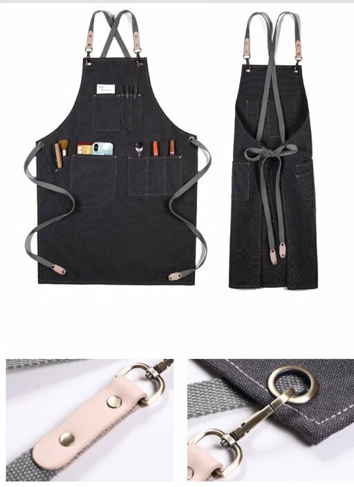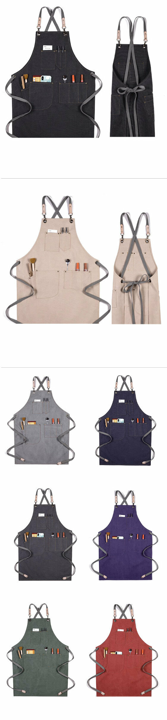 新款理髮店美髮師圍裙(織帶厚帆布B款-紫色)
