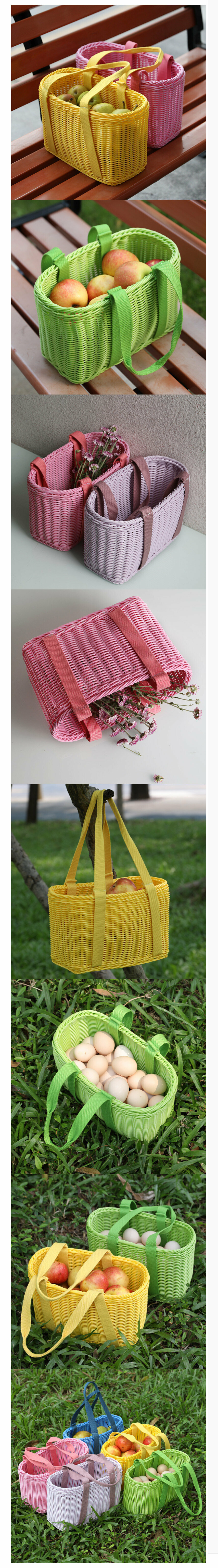 新款籐編手提菜籃子戶外郊遊野餐籃(綠色)尺寸:41*20*31CM)