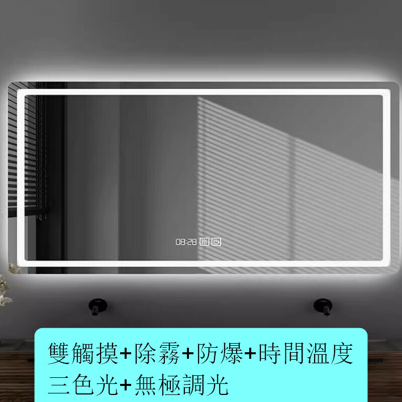 新款浴室掛牆LED觸摸屏貼牆發光浴室鏡【尊享款】【雙觸摸+除霧+防爆+時間溫度金75*120cm】