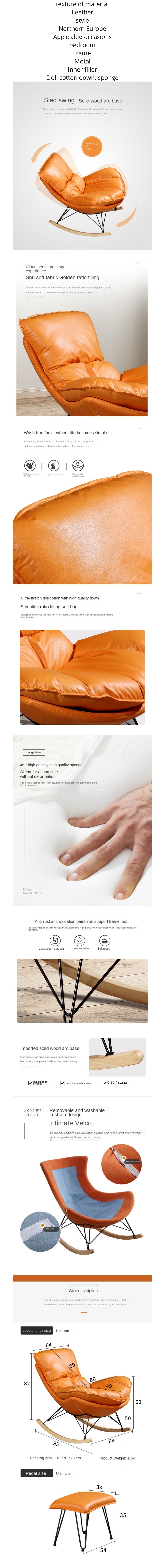 新款豆袋椅休閒椅輕奢家居搖椅午睡椅(淺灰色)布料款