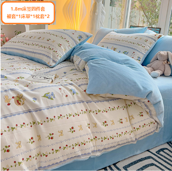 新款床上用品四件套(鈴蘭【100%純棉+高密牛奶絨】)(尺寸1.8m床笠四件套)