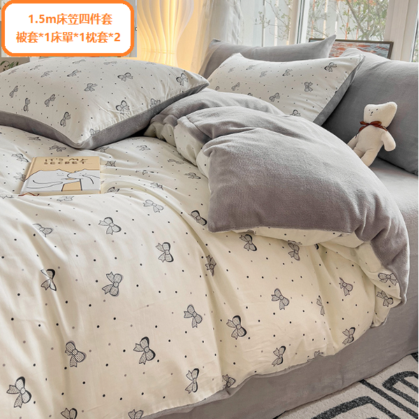 新款床上用品四件套(小情歌【100%純棉+高密牛奶絨】)(尺寸1.5m床笠四件套)