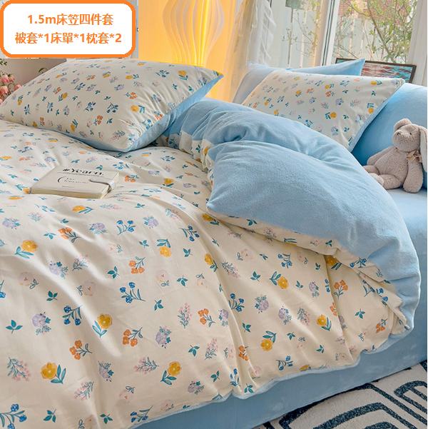 新款床上用品四件套(遇見【100%純棉+高密牛奶絨】)(尺寸1.5m床笠四件套)