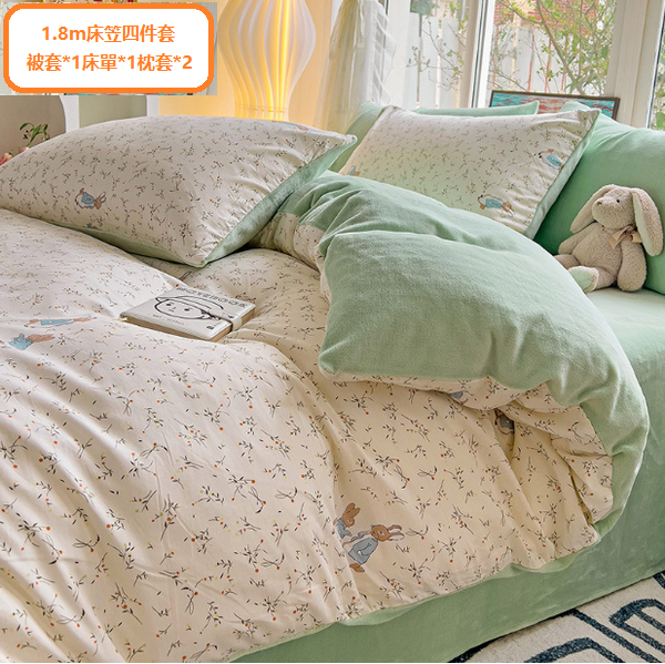 新款床上用品四件套(兔先生【100%純棉+高密牛奶絨】)(尺寸1.8m床笠四件套)