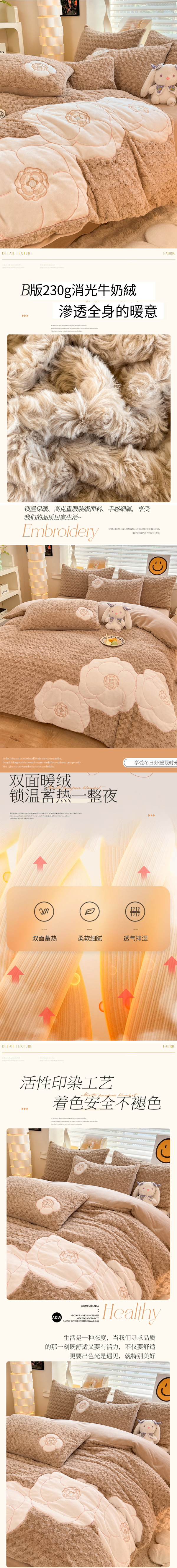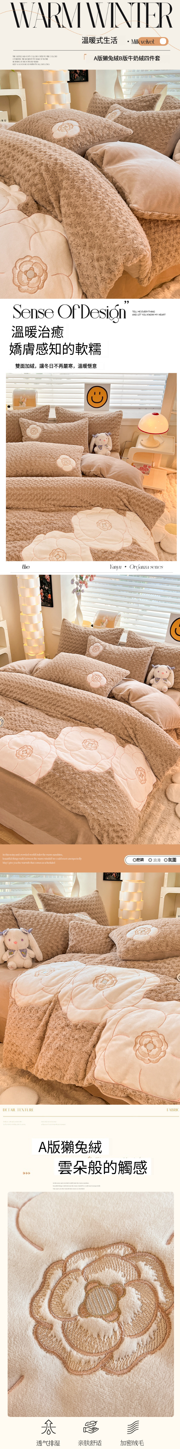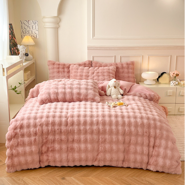新款床上用品獺兔絨四件套(粉豆沙)(尺寸1.5m床單款)