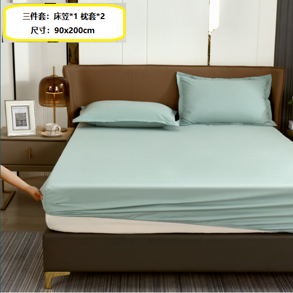 新款床上用品防水床笠三件套(防水-淺豆綠【A類母嬰級/適合裸睡】)(尺寸90x200cm)
