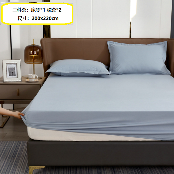新款床上用品防水床笠三件套(防水-霧霾藍【A類母嬰級/適合裸睡】)(尺寸200x220cm)