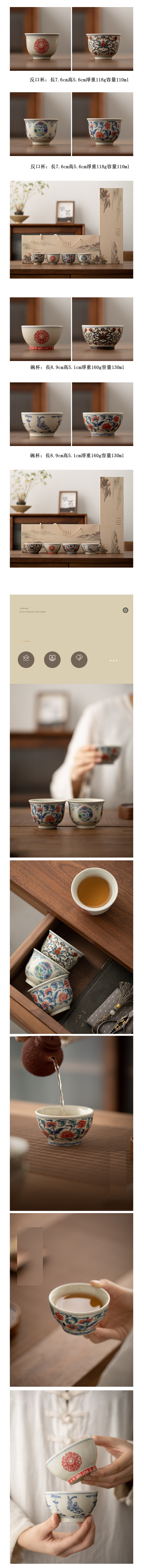 新款青花茶杯(草木灰--反口杯【牡丹】)
