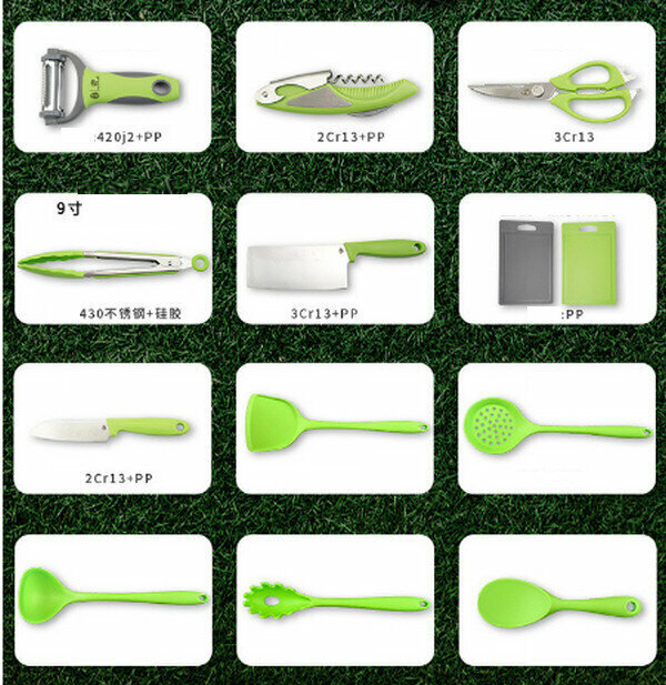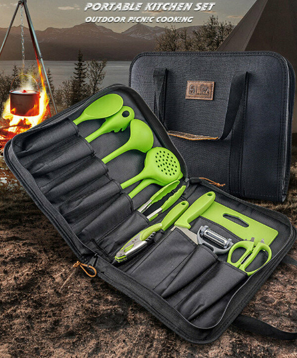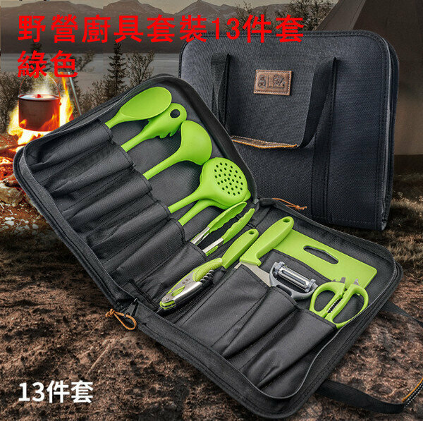 新款野營廚具套裝13件套【YDCJ-1A】綠色