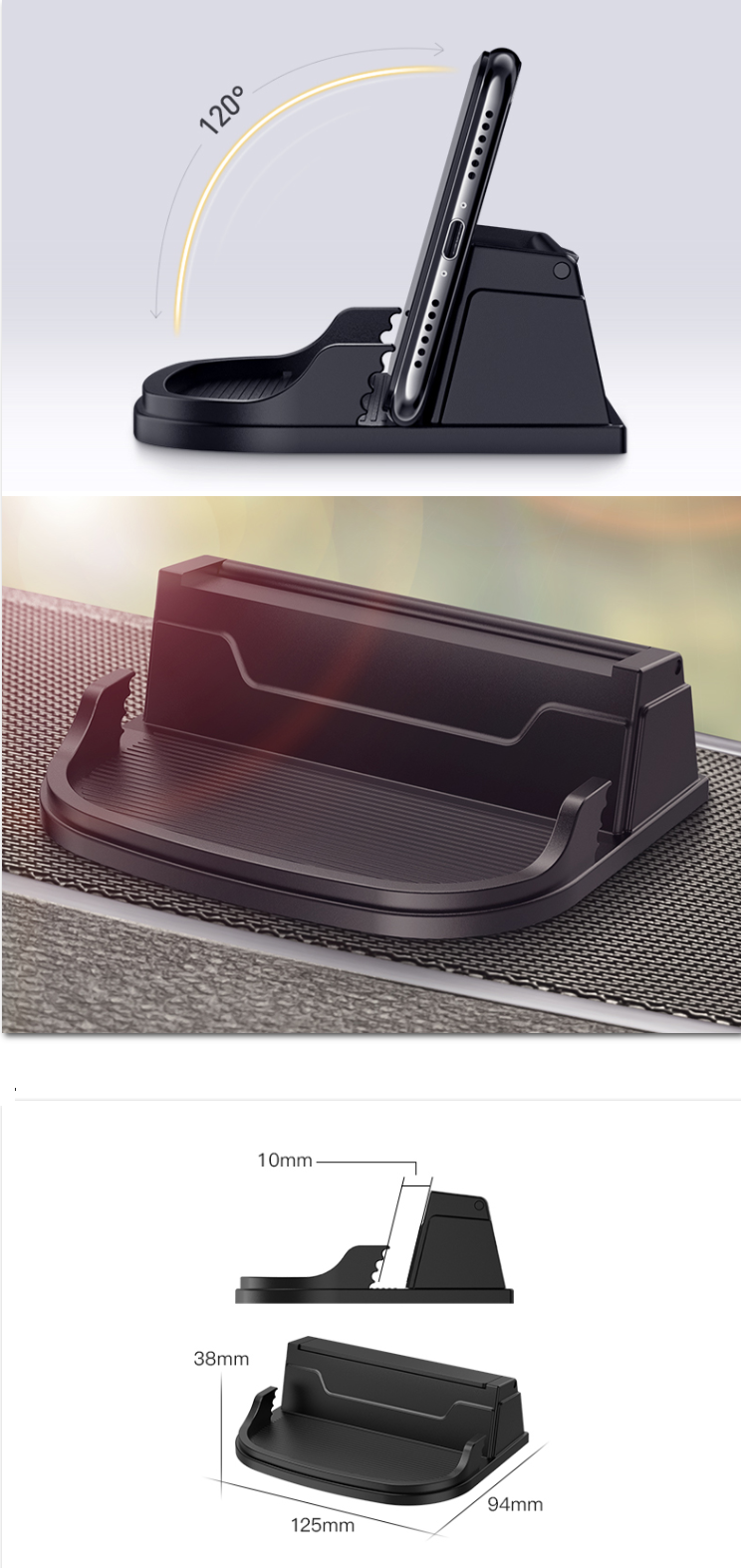 新款汽車3合1多功能手機支架(黑色)