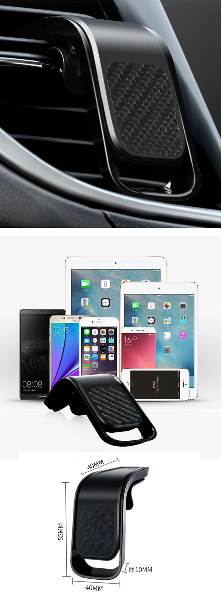 新款汽車出風口磁力強磁鐵手機支架(黑色)