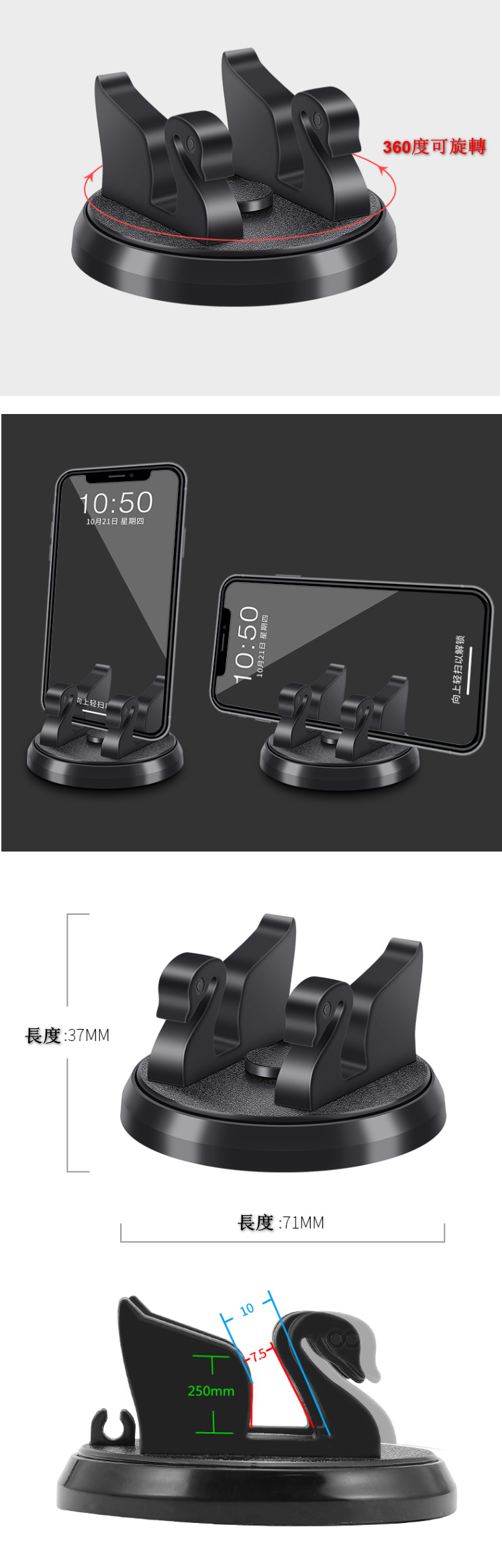 新款汽車中控臺天鵝款橫豎屏手機支架(黑色)