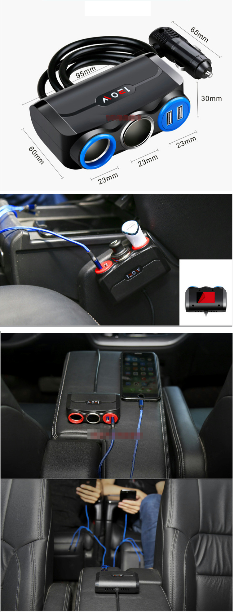新款汽車多功能一拖三充電器(帶線紅環)