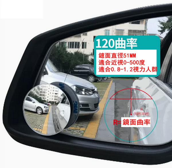新款汽車用後視鏡小圓鏡【對裝】無邊框+360可調+玻璃51mm曲率100【視力1.2以上用】