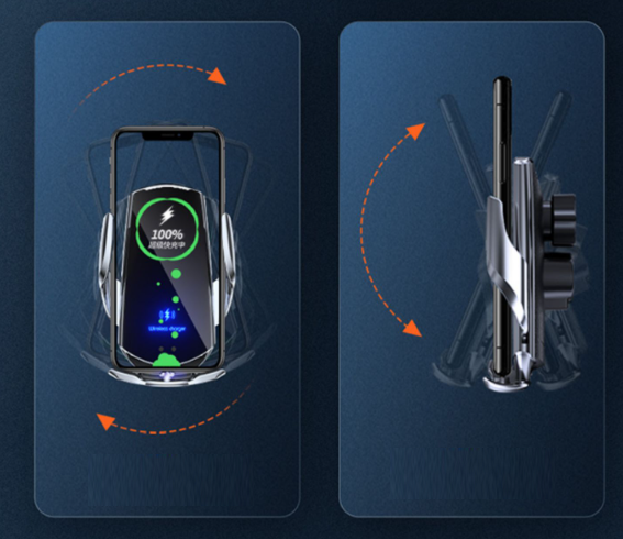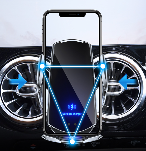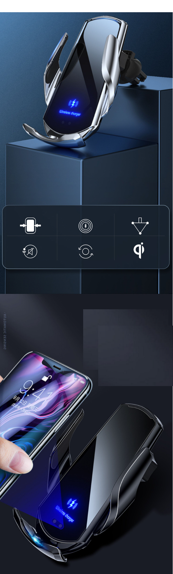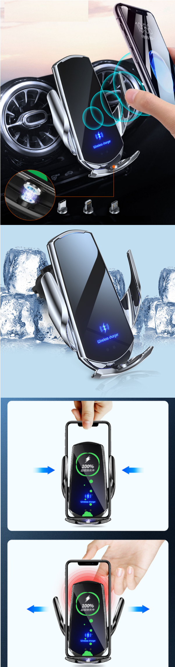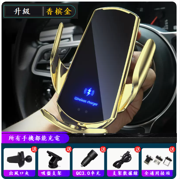 新款車載無線充電器(標配香槟金+數據線+出風口夾+底座吸盤+數顯快充頭+三個接頭)