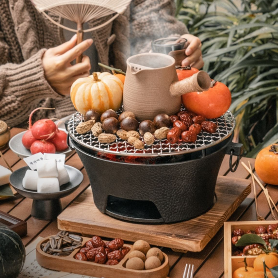新款碳爐燒烤鑄鐵器具(鑄鐵條紋烤肉盤24CM)