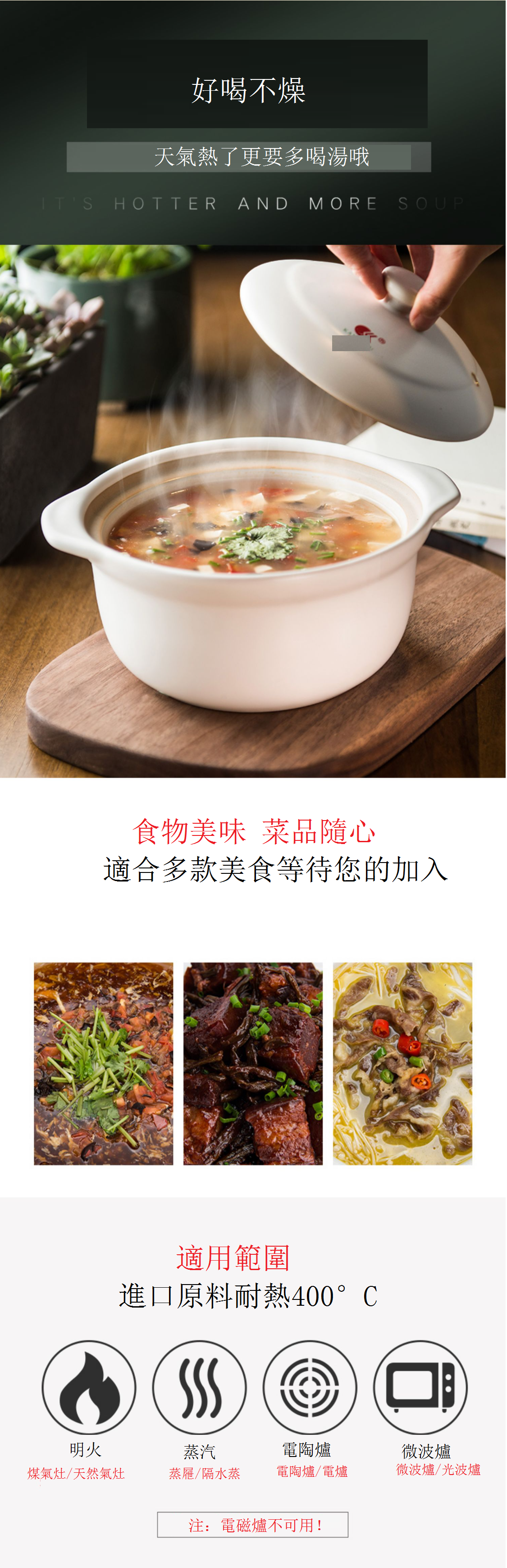 新款砂鍋 燉鍋 陶瓷鍋 煲仔飯專用沙鍋(3100ML(適合4-5人))