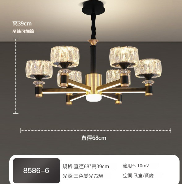 新款吸頂燈【8586款10頭水晶燈罩(燈臂發光)】