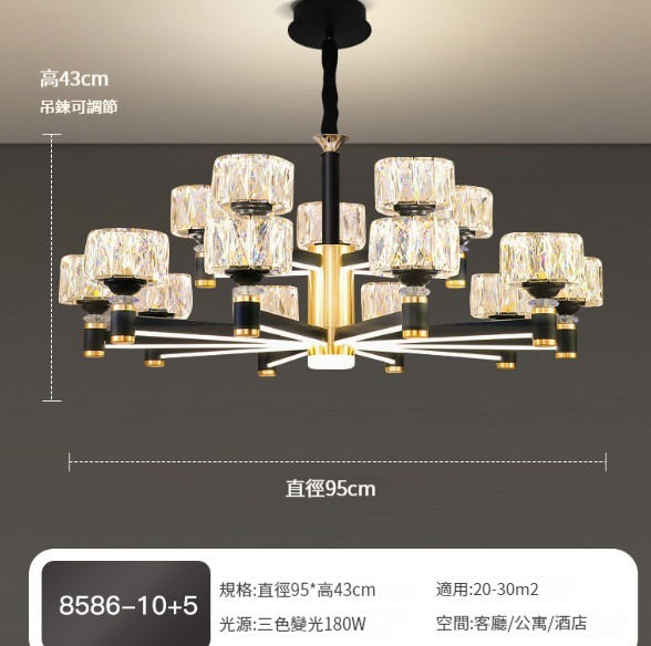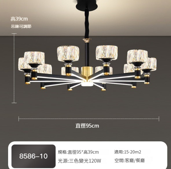新款吸頂燈【8586款12頭水晶燈罩(燈臂發光)】