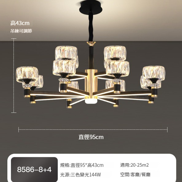 新款吸頂燈【8586款15頭水晶燈罩(燈臂發光)】