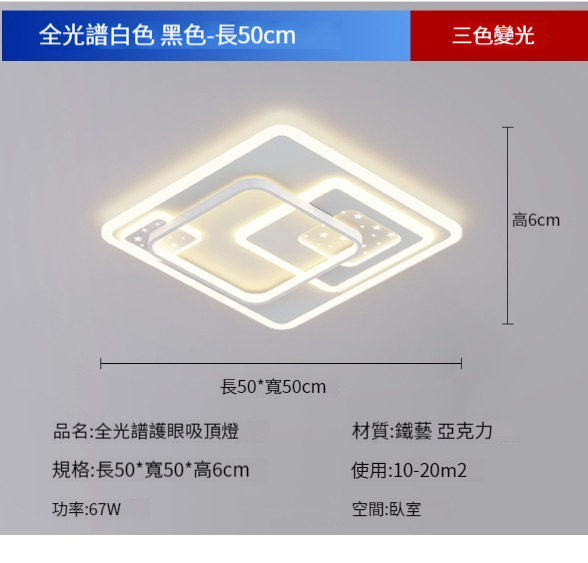 新款吸頂燈【黑色方臥室燈:50cm-67W】