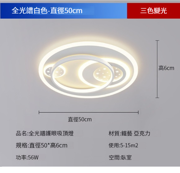 新款吸頂燈【白色方臥室燈:50cm-67W】