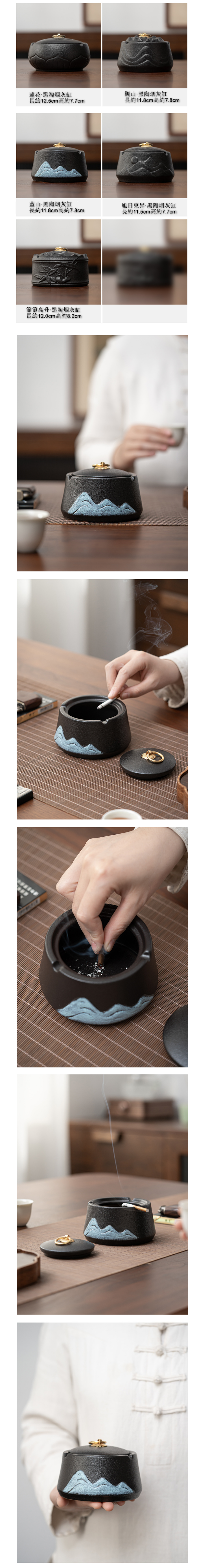 新款陶瓷煙灰缸帶蓋(節節高升---黑陶煙灰缸)