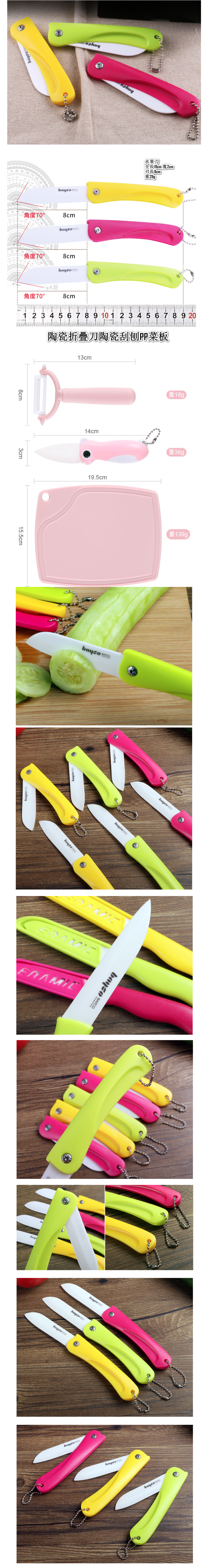 新款陶瓷刀(玫紅色不可折疊帶刀套全長:19CM)