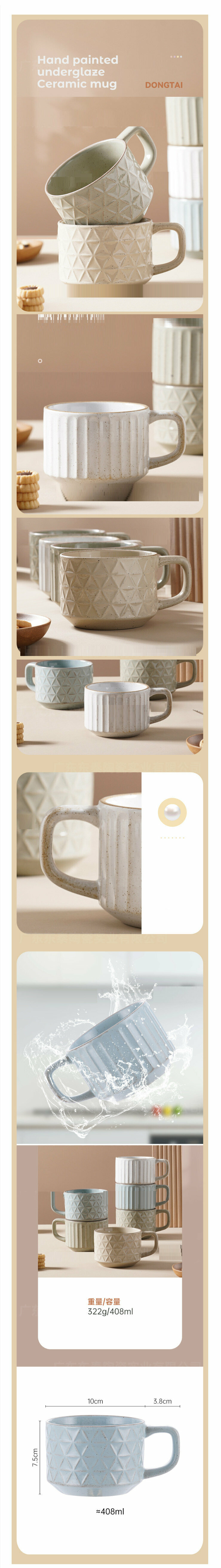 新款陶瓷杯馬克杯咖啡杯【粉灰-三角紋】(容量408ml)