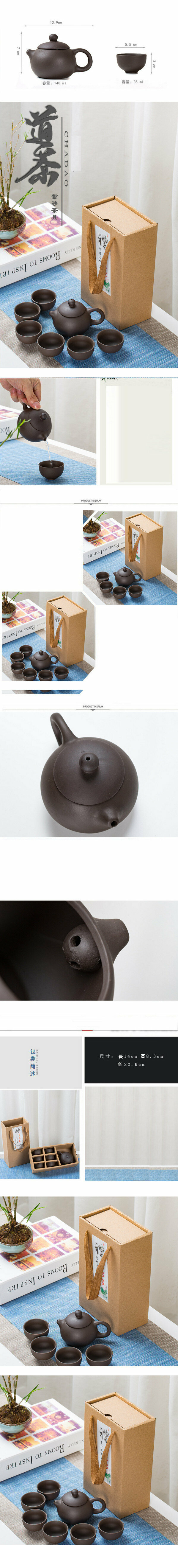 新款陶瓷紫砂功夫茶具茶杯套裝【紫砂茶具含禮盒(1壺6杯)】