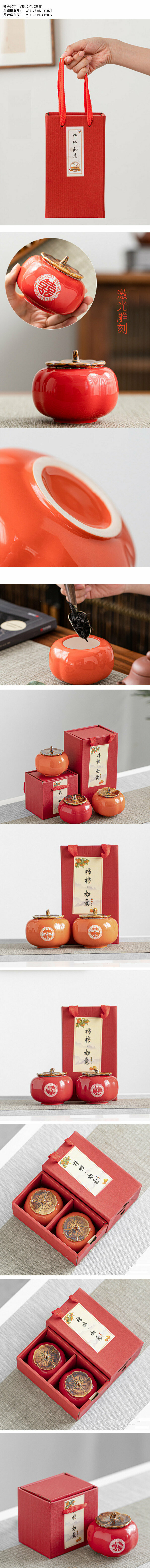 新款陶瓷密封柿子茶葉罐擺件裝糖盒【雙罐紅大柿子黃蓋(含禮盒)】