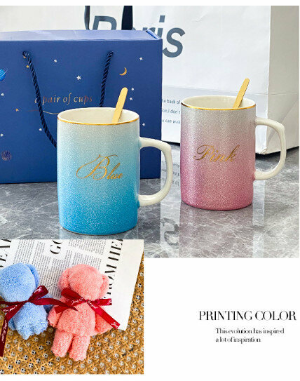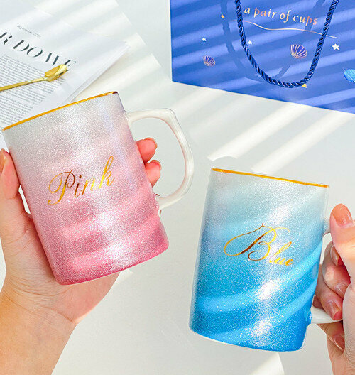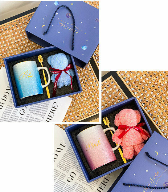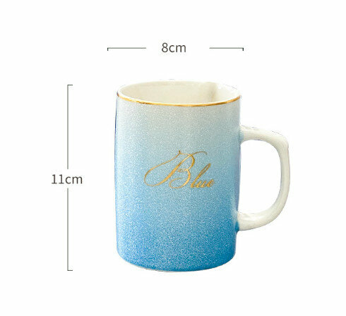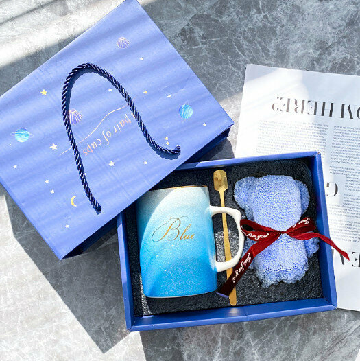 新款陶瓷水杯【301-400ml】【藍色禮盒套裝】