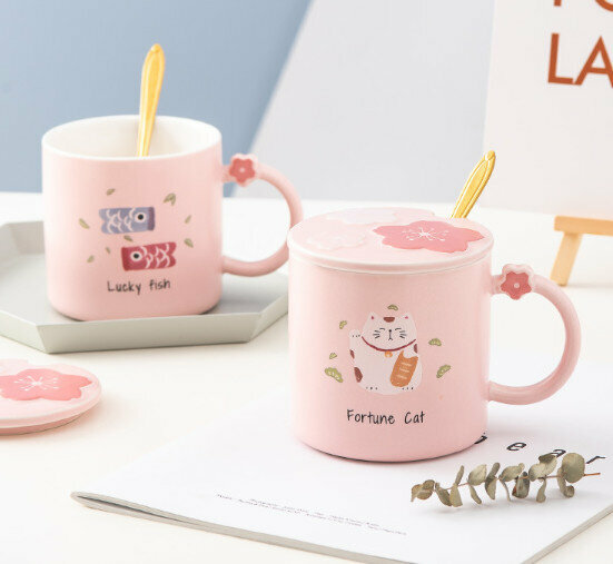 新款陶瓷水杯【301-400ml】【C款三件套】