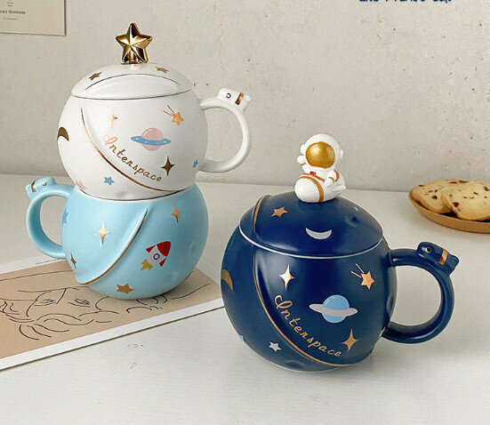 新款陶瓷水杯【301-400ml】【A款-白色(太空人勺子)】