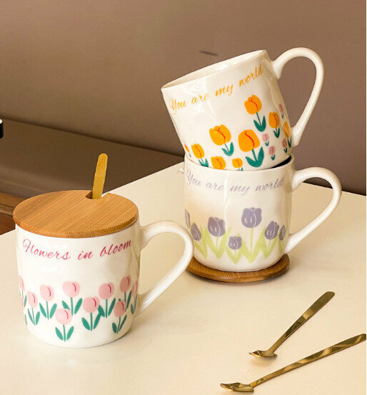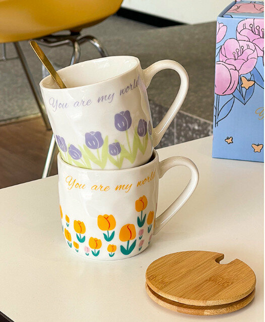 新款陶瓷水杯【301-400ml】【橙色禮盒】