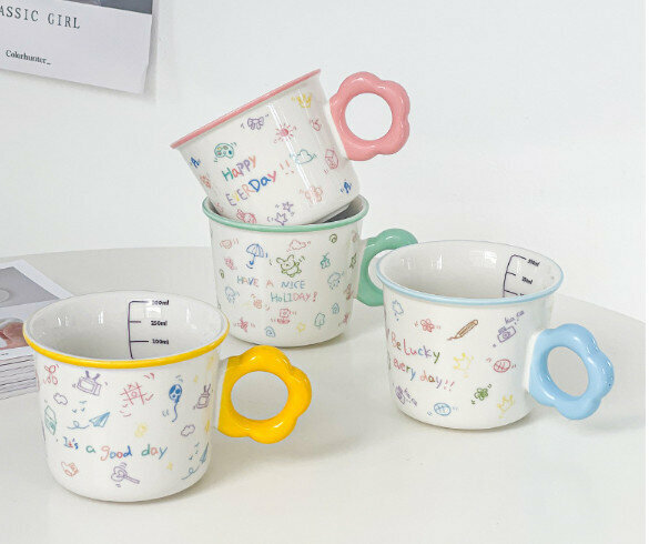 新款陶瓷水杯【301-400ml】【粉紅色】