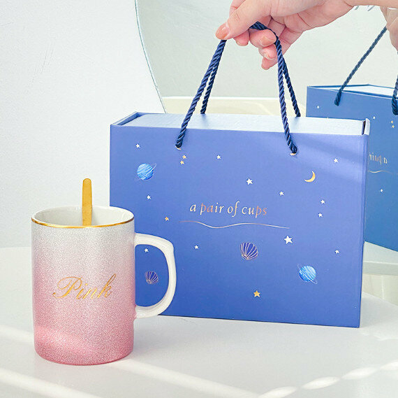 新款陶瓷水杯【301-400ml】【粉色禮盒套裝】