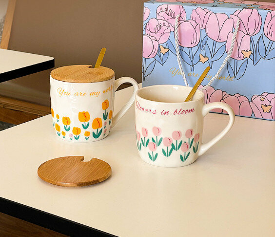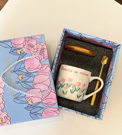 新款陶瓷水杯【301-400ml】【紅色禮盒】