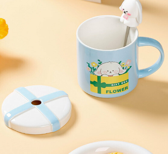 新款陶瓷水杯【401-500ml】【藍色】